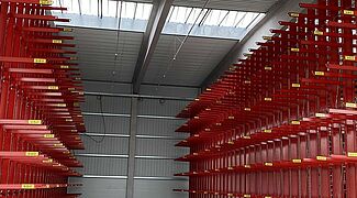 Veći skladišni kapaciteti, urednije skladištenje građevnog materijala i drva, kraći transportni putovi – odluka trgovca građevinskim materijalom Mayrose da na novoj lokaciji u Lingenu više ne skladišti u blok skladištu, već na regalima tvrtke OHRA, dovela je do jasno strukturiranog i znatno učinkovitijeg skladišta. Natkriveni objekt nudi oko 1.800 skladišnih mjesta u šest paletnih i tri reda konzolnih regala. Maksimalna skladišna visina od 7,4 metra, što je prilično neuobičajeno za trgovinu građevnim materijalom, omogućuje visoku iskoristivost raspoloživog prostora.
