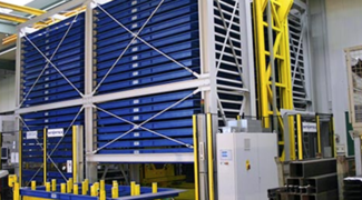 3. TowerMat TM-RE je najsnažnija izvedba i dizajniran je za velike količine skladištenja – s bočno pomičnim uređajem za upravljanje regalima duž više skladišnih tornjeva.