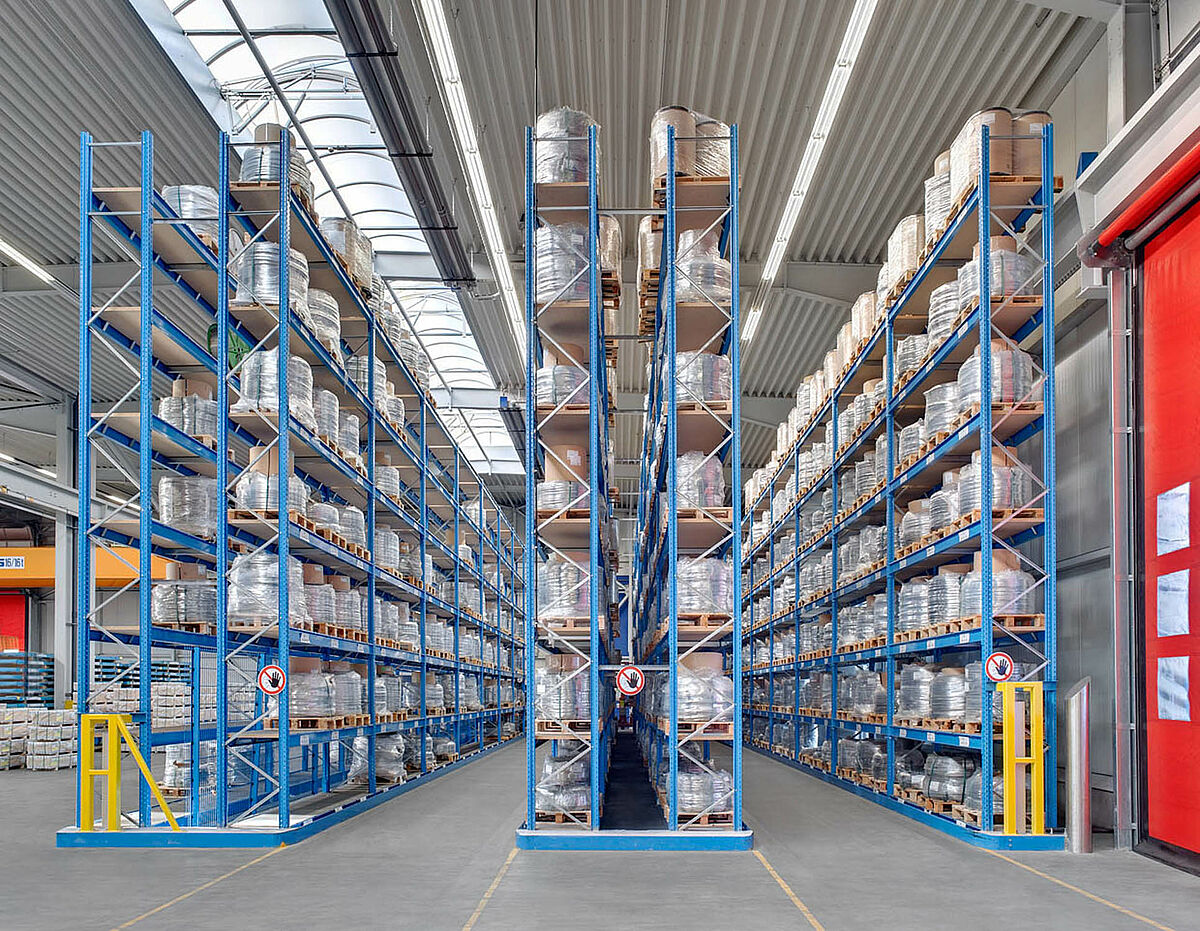 Rješenje je bio sustav konzolnih regala visine 7,50 m i s 14 razina skladištenja jedna iznad druge, pri nosivosti od po 1.200 kg po konzoli dužine 1.250 mm.