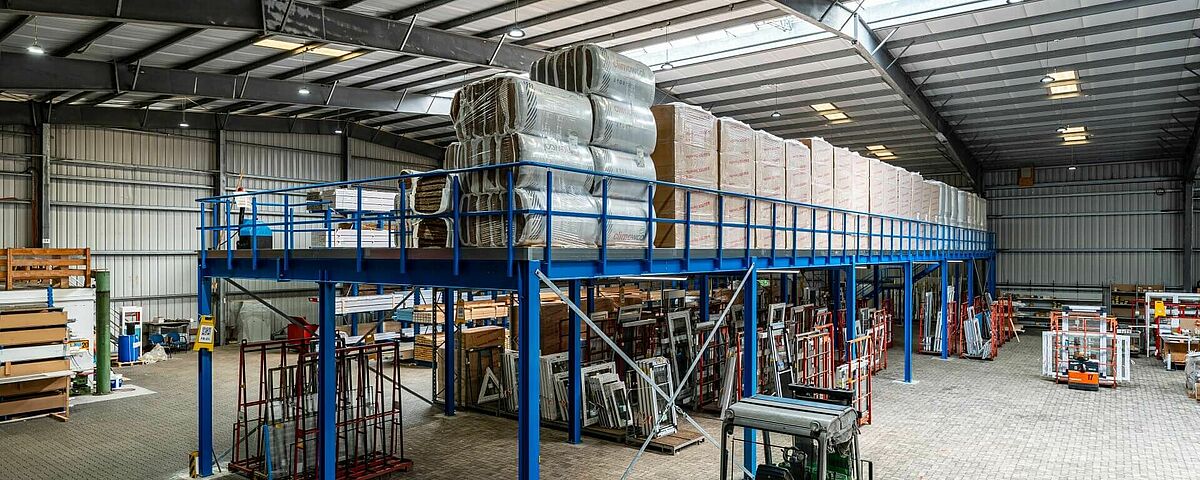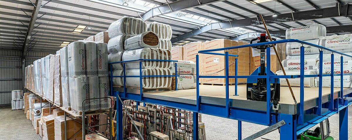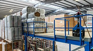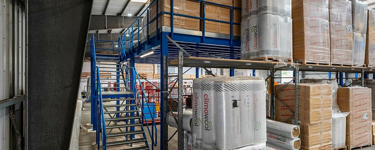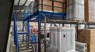 Obiteljsko poduzeće FRIES, jedna od vodećih veletrgovaca drvom i podnim oblogama u Njemačkoj, doslovno je podigao logistiku u svojoj centrali u Kielu na višu razinu: Postavljanjem skladišne platforme poduzeće sada može u potpunosti iskoristiti visinu prostorije u postojećoj dvorani. Na visini od 3,8 metara, na drugoj razini, nastalo je oko 270 kvadratnih metara iskoristive površine za skladištenje velikih paleta s izolacijskim materijalom u blokovima. Ispod je stvoren novi radni prostor – time više nije bilo potrebe za gradnjom dodatne hale.