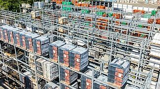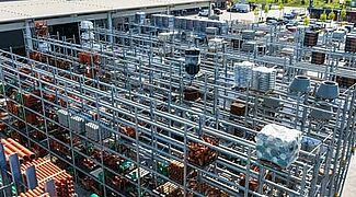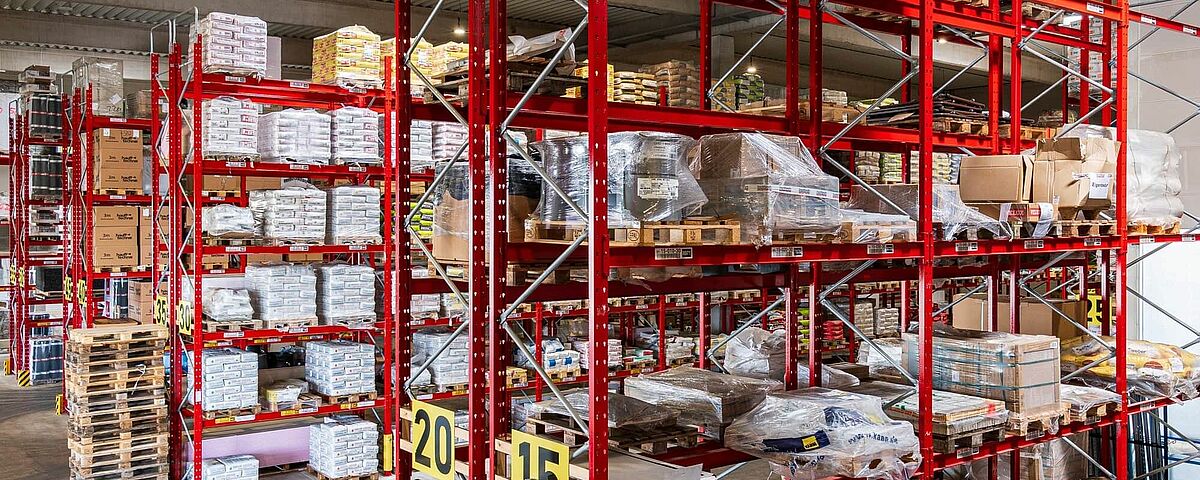 Paletni regali, od kojih je većina dizajnirana u dvostrukim redovima, nude ukupno oko 3.400 skladišnih mjesta. Duljina skladišnih razina konzolnih regala iznosi preko 1.250 metara, raspoređenih u šest skladišnih razina. Svi vanjski regali su vruće pocinčani, a neki od konzolnih regala su opremljeni i krovovima. Vertikalni regali su također prilagođeni visinom i iskoristivom dubinom, kako bi odgovarali portfelju letvica tvrtke Benthack. Vertikalni regali omogućuju trgovcu građevinskog materijala da na način prilagođen kupcima predstavi različite dimenzije i dizajne svojih letvica.