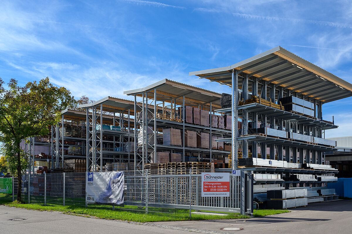 Jednostavno dođite vozilom izravno do željene robe i utovarite je. Drive-in princip olakšava kupovinu u trgovini građevinskih potrepština, posebno za glomazne i teške predmete poput (vrtnog) građevinskog materijala ili obloga za vrt. Schneider također koristi ovaj pristup u specijaliziranim trgovinama. Bez obzira na vremenske uvjete, kupci dobivaju potrebnu robu prikladno smještenu ispod natkrivene površine utovara s tri trake. Tvrtka OHRA je izvela halu u vidu regalne hale: Nosači regala služe ujedno kao nosiva potkonstrukcija za izgradnju hale. To skraćuje vrijeme projekta i nudi znatne troškovne koristi. Regalna hala je dopunjena konzolnim i paletnim regalima u vanjskom području, gdje je roba, zahvaljajući integriranom krovu, zaštićena od vremenskih uvjeta. Oba područja su povezana krovom od 13 metara. Osim toga, OHRA je realizirala halu za toplo skladištenje bez mraza u kojoj se, osim uredskog prostora, mogu sigurno skladištiti i građevinske kemikalije i podne obloge.